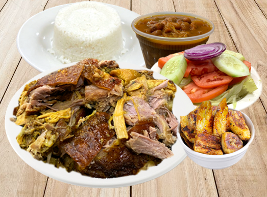 ALL MEATS ARE SERVED WITH: RICE, BEANS & SWEET PLANTAIN. ADD SALAD $2.00 • SERVED IN A DIFFERENT CONTAINER ADD $2.00 TODAS LAS CARNES SON SERVIDAS CON: ARROZ, HABICHUELA Y PLATANO MADURO. AGREGUE ENSALADA POR $2.00 EXTRA • SERVIDO POR SEPERADO $2.00 EXTRA